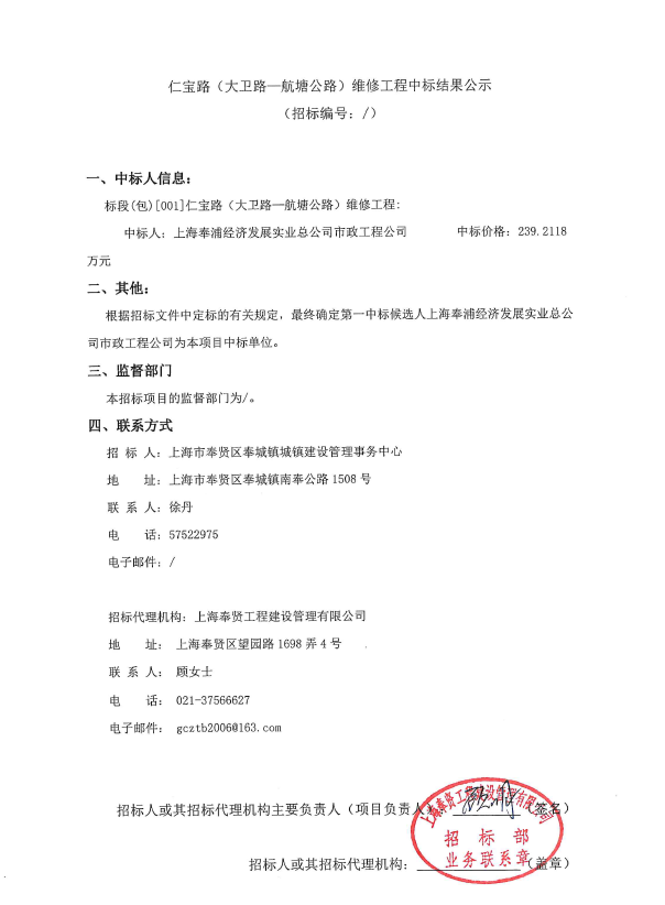 上海奉賢工程建設管理有限公司 |
